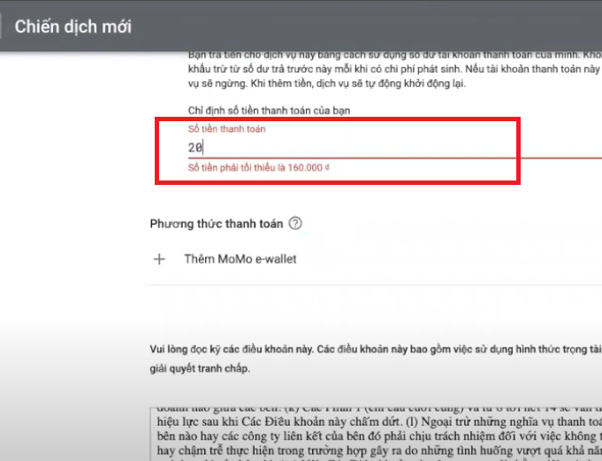 Và bước cuối cùng nữa để hoàn tất việc đăng kí tài khoản của bạn đó là thêm hình thức thanh toán. Bạn có thể chọn thanh toán qua thẻ Visa, Master card,.. hoặc thậm chí là qua Momo đều được. Ở dưới người ta yêu cầu mức thanh toán tối thiểu là 160000VNĐ thì bạn cứ nhập vô số tiền lớn hơn mức tối thiểu như hướng dẫn là được, không có vấn đề gì cả.