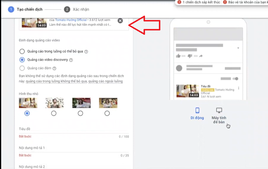 Bước cuối cùng là bạn dán link video vào chiến dịch, và hoàn tất việc đặt tiêu đề cho video của bạn nữa là xong rồi đó.